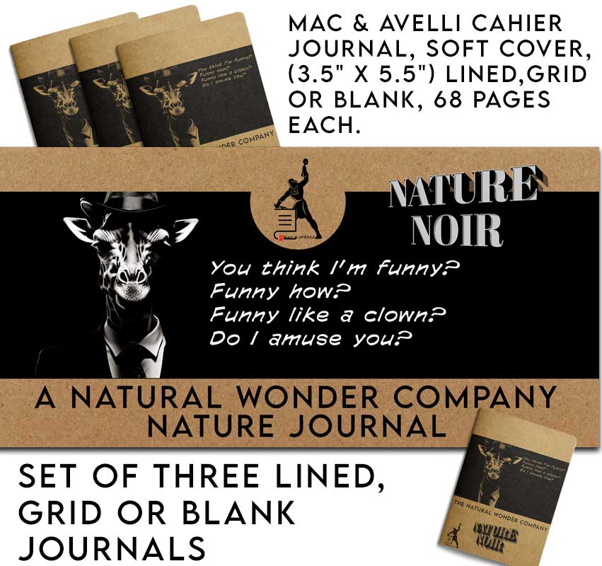 Step into the witty world of Nature Noir with the “Good Fellas” Giraffe: Nature Noir Journal. One of four hilarious characters from the series in collaboration with The Natural Wonder Company, this journal is not just for your notes—it’s a stage for your clever reflections. Inspired by noir culture with a humorous twist, this journal takes the classic tough-guy persona and gives it to the giraffe—a smooth-talking, wise-cracking companion for all your adventures.